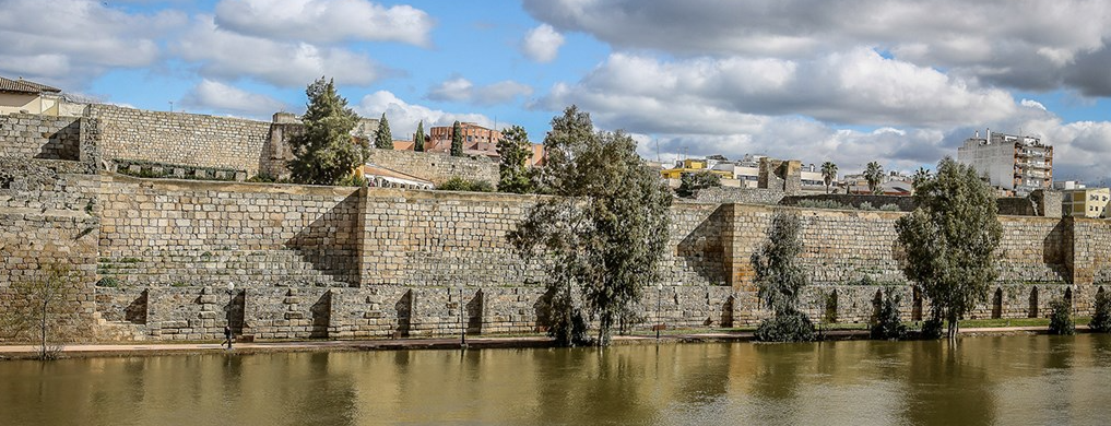 En la margen derecha del Guadiana existe un extenso dique/muro. Es ese fuerte muro con contrafuertes, con base de sillares y el resto del alzado en mampostería, se extiende desde la Alcazaba hasta el lugar donde hay un aparcamiento público en la calle Atarazanas .