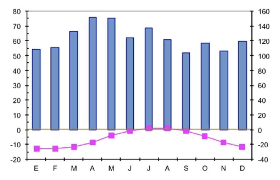 ( under 0ºC) most of the year and has a very short summer ( July and August ). Precipitations are