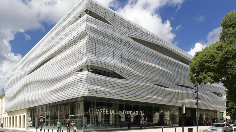 El exterior del museo representa una toga de vidrio plisada cuyas hojas de vidrio evocan un mosaico, este lugar es a la vez pues , un museo de ciencias, un restaurante y un jardín mediterráneo. Su azotea ofrece una vista de 360° de los lugares más emblemáticos de Nimes.