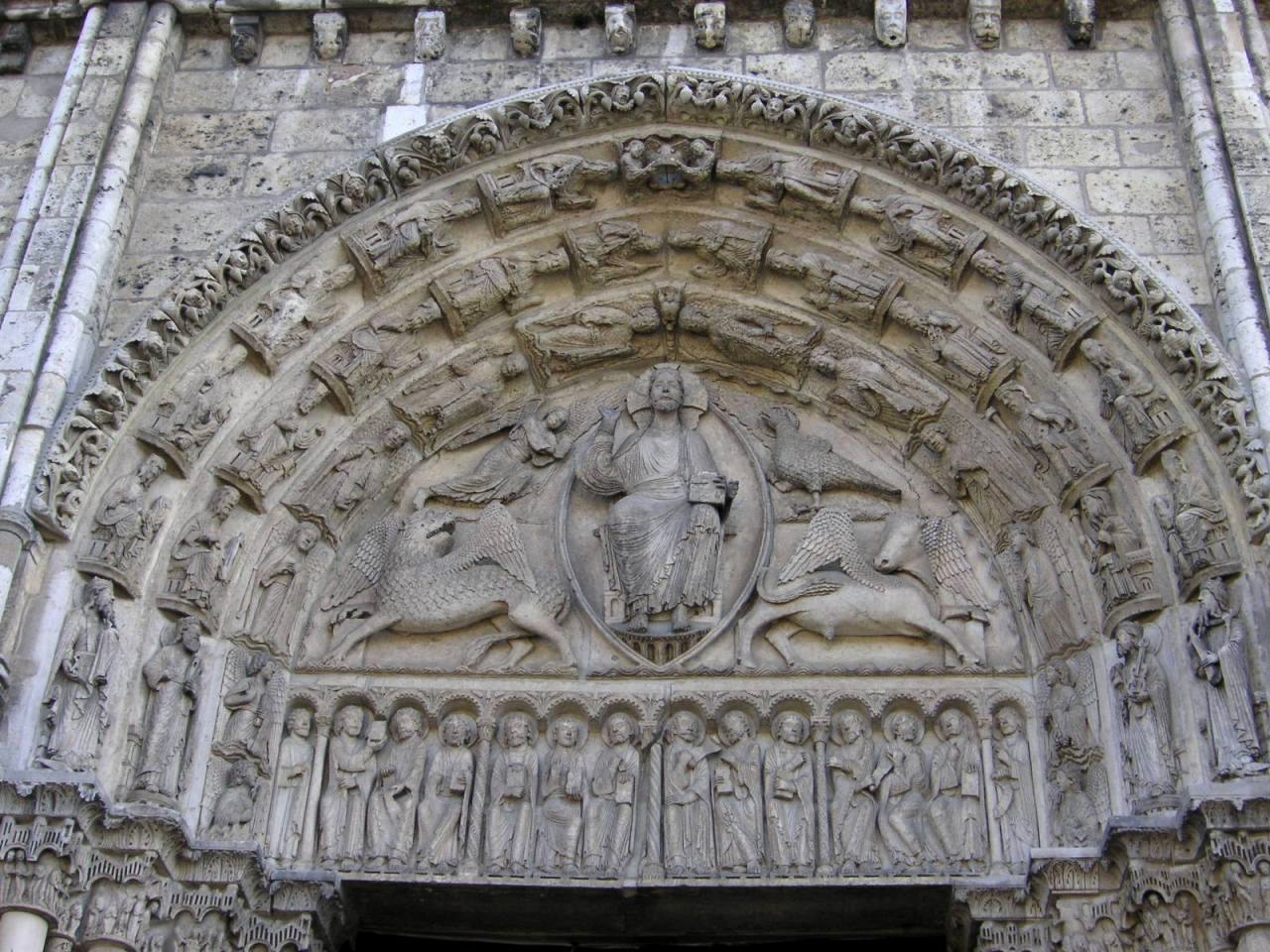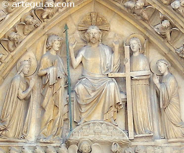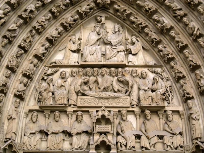 Deesis . Tympanus of gate of Final Judgement of Notre Dame of Paris